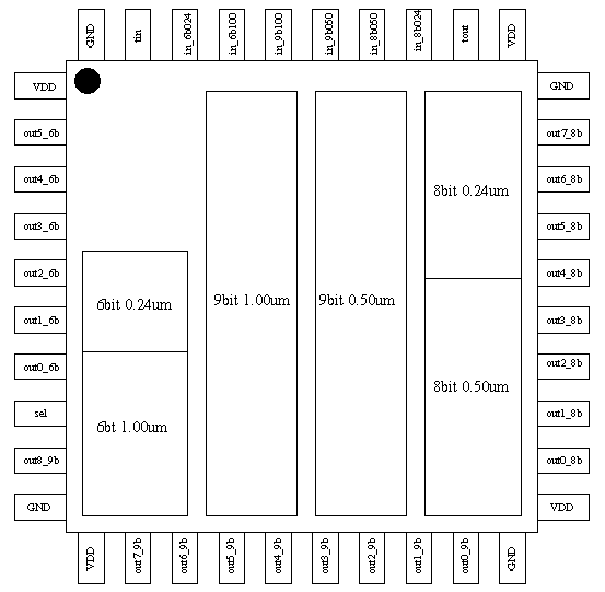 (2) Designed the first prototype chip: 6, 8, and 9 bit flash ADC